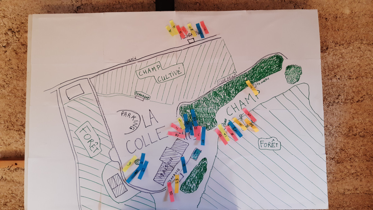 A peine débarqués, nous sommes immédiatement appuyés dans notre travail par l'équipe des CM1 de l'école primaire de Gréoux-les-bains qui, une fois briefée, se déploie dans la Colle à la quête de micro-mouvements.