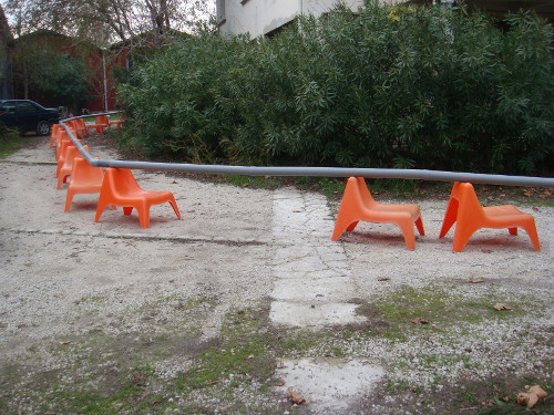 Du tube PVC de diamètre 100mm et des capsules faites de matériel d'évacuation.