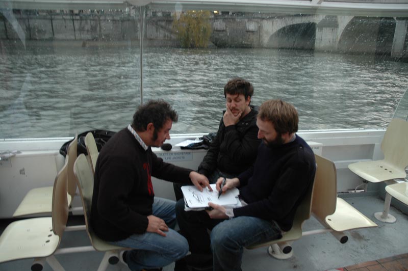 C'est sur le pont bâbord du Rivoli, fleuron des Batobus de la Ville de Paris, que le capitaine Gallis dessine le premier croquis du Fabrudy, le radeau qui ne traversa pas la Loire et que Bruno Persat expliqua à Eddy Godeberge la proportion parfaite de salaison du jambon de pata negra.